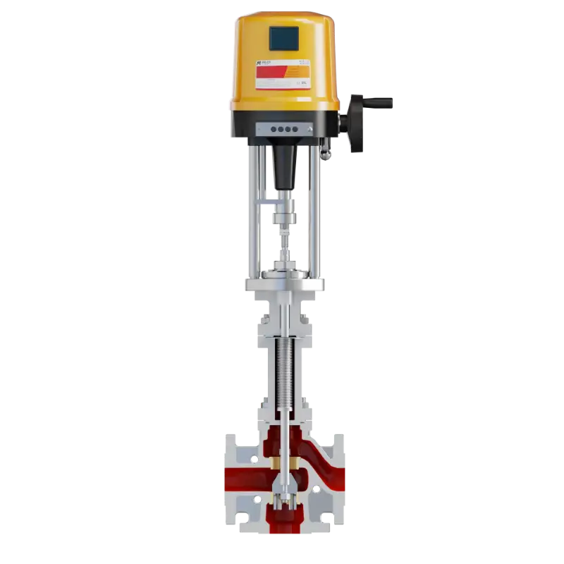 The electric three-way mixing/diverting control valve features an integrated valve body with dual-plug or sleeve configurations. A precision electric actuator directly drives the valve stem to achieve precise mixing and diverting of two fluid streams. Internal flow passages are optimized via fluid dynamics analysis to ensure smooth transition under elevated temperature and pressure conditions, incorporating a self-centering mechanism to guarantee accurate and reliable operation.